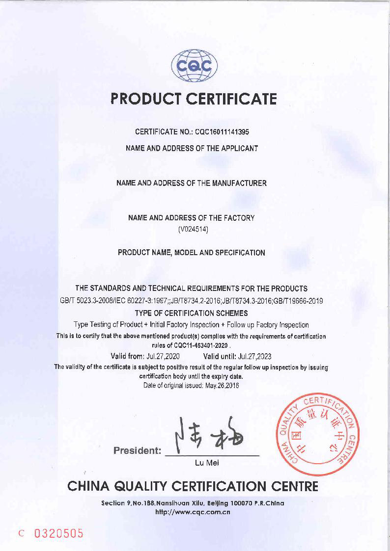 產(chǎn)品通過中國國家強(qiáng)制性產(chǎn)品認(rèn)證,ISO9001質(zhì)量管理體系認(rèn)證等管理體系認(rèn)證;